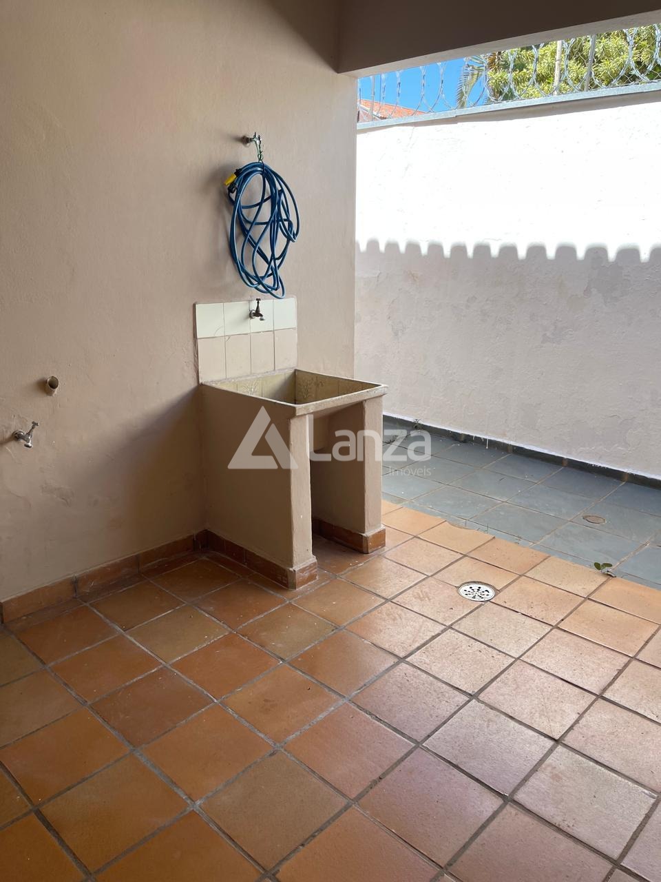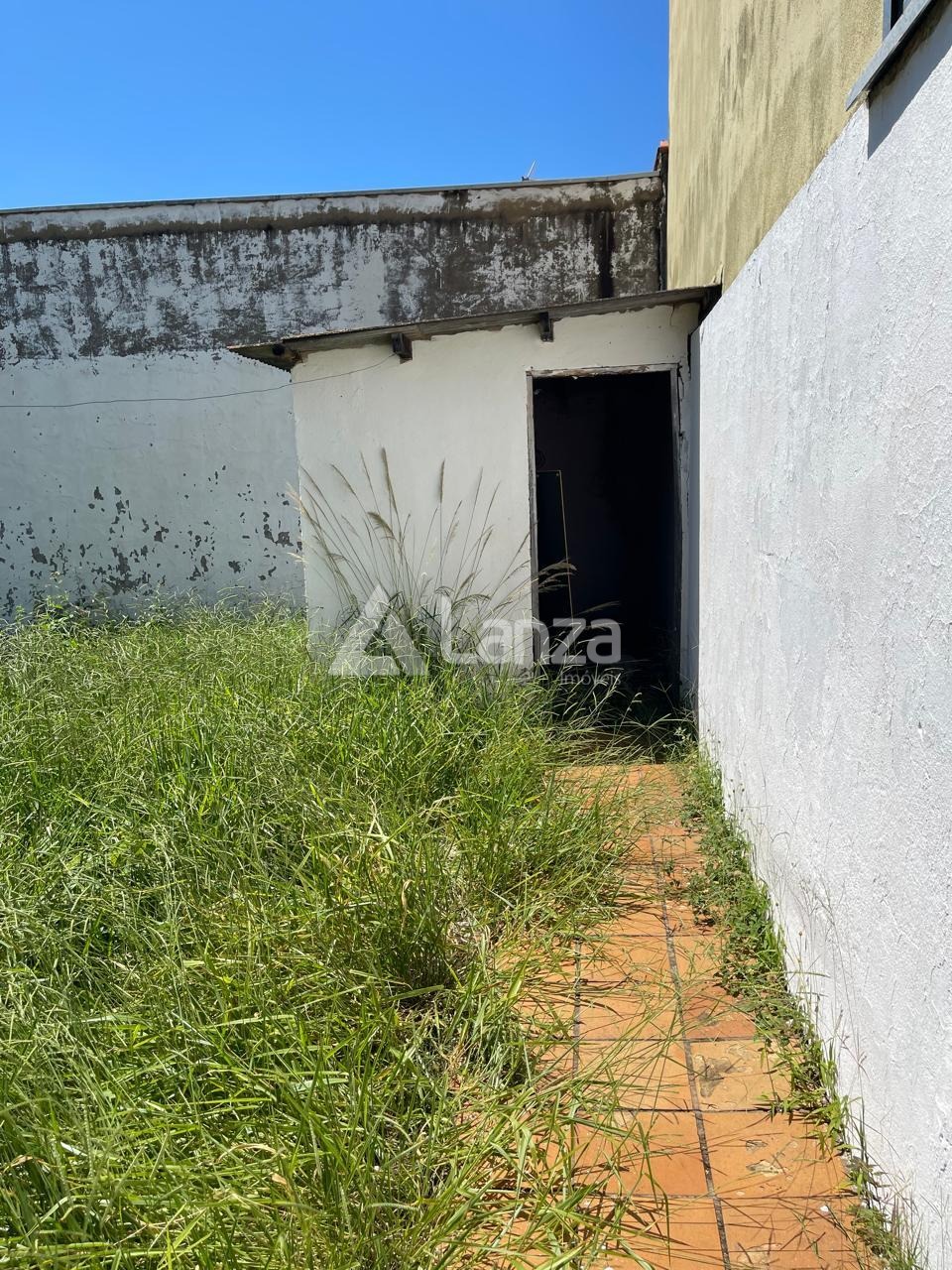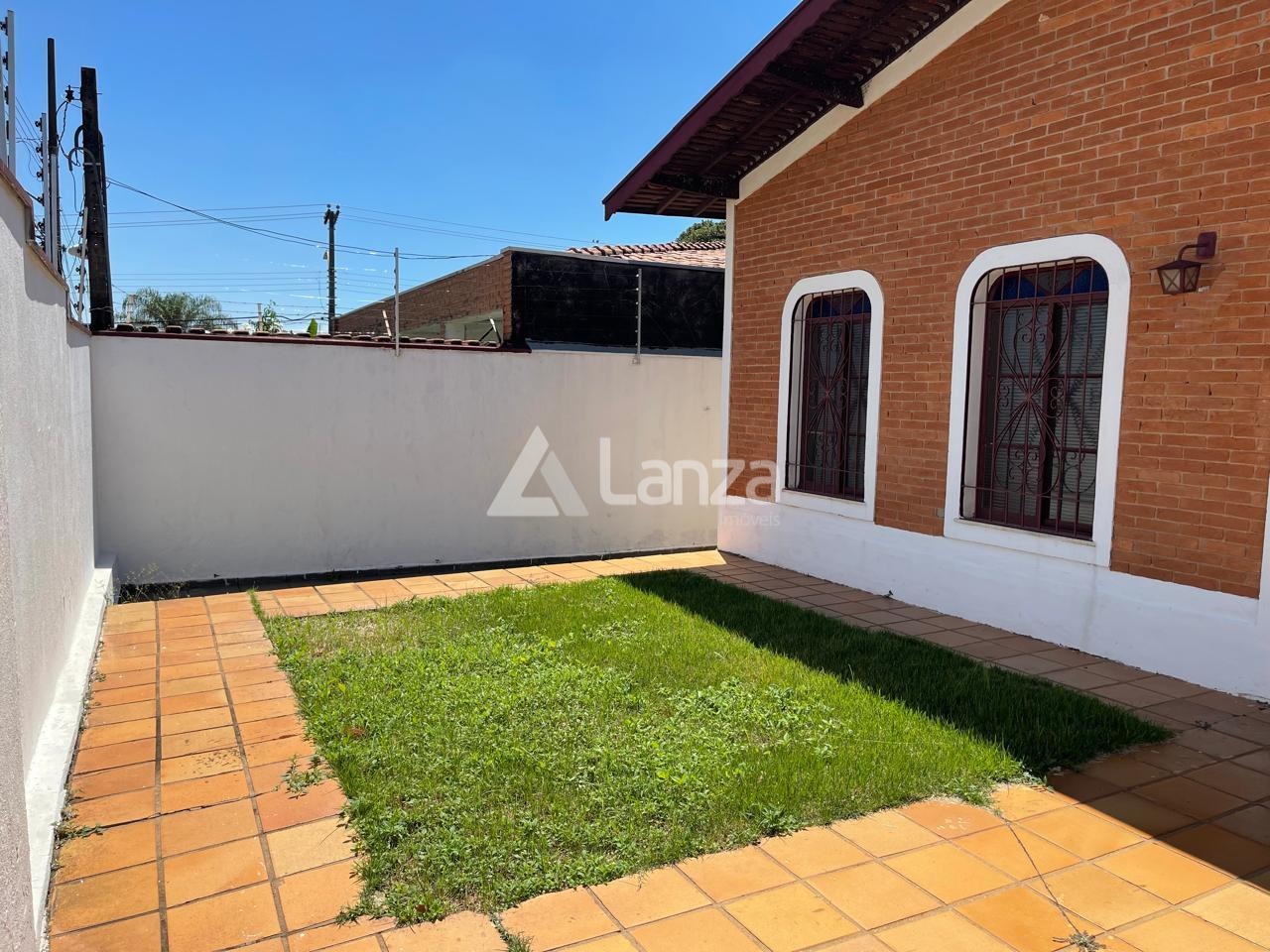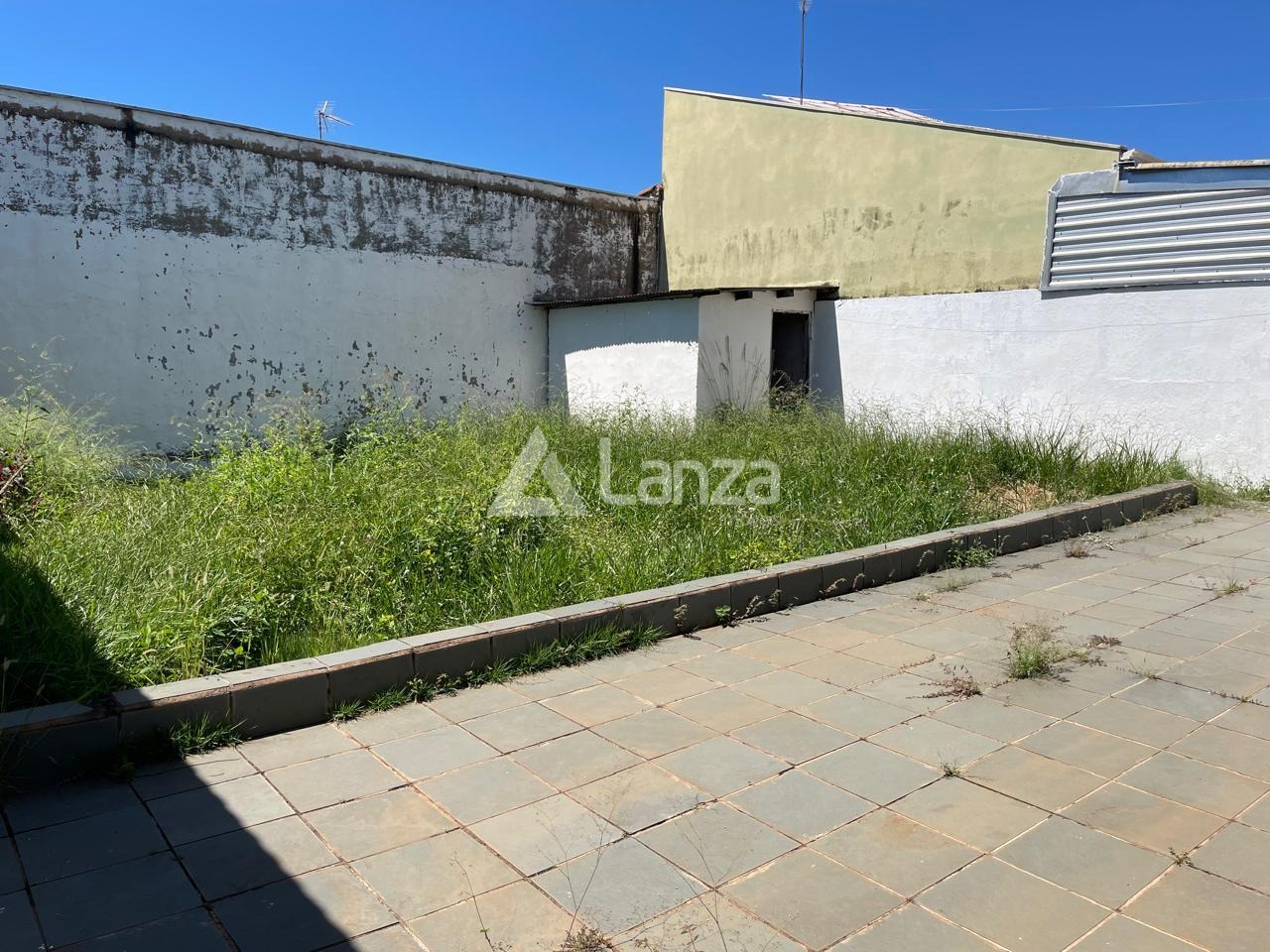Quintal, parte gramado e parte com piso.