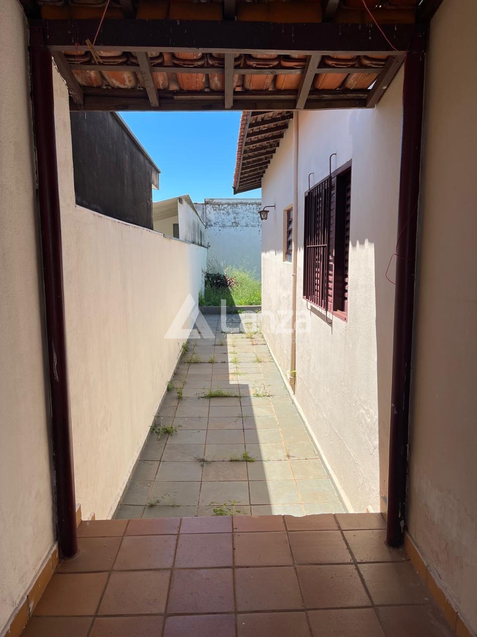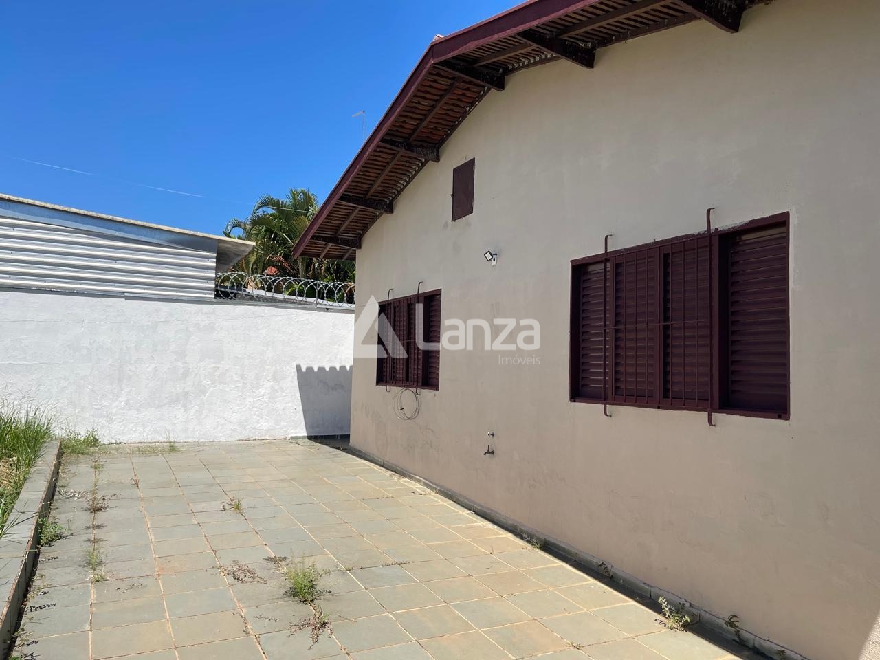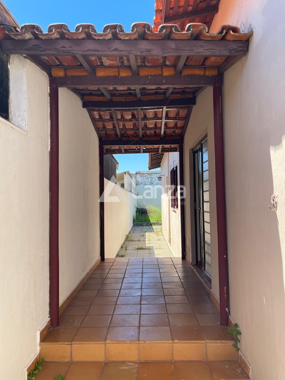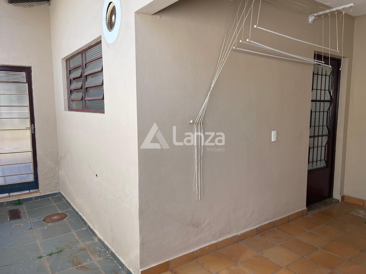 Quintal, parte gramado e parte com piso.