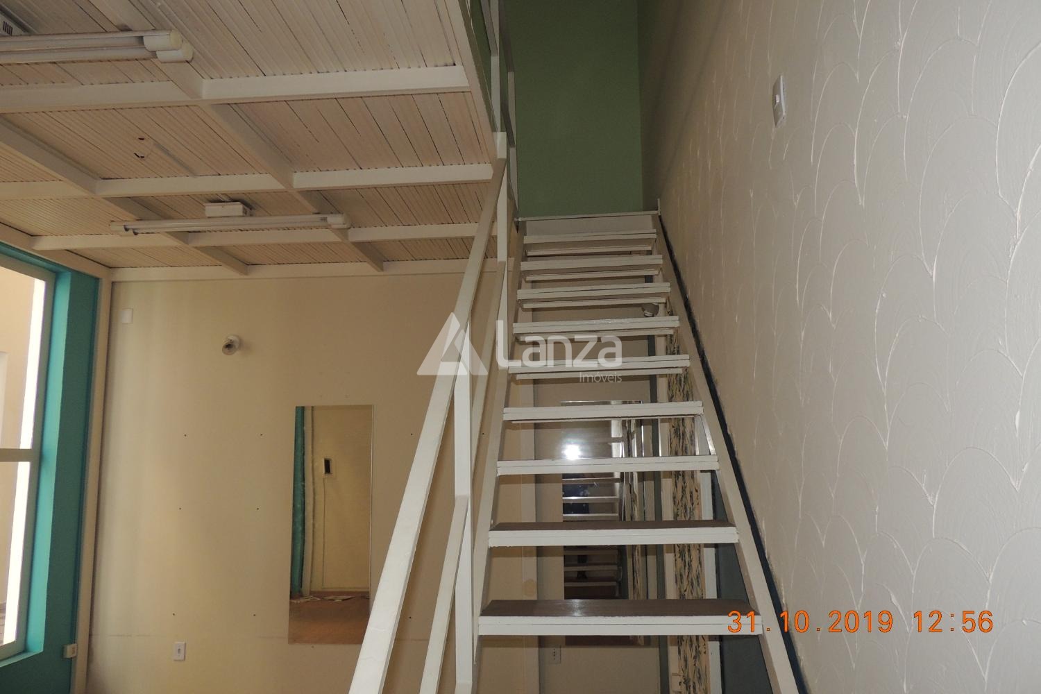 Sala com 50 m², mezanino, banheiro, piso cerâmico. Estacionamento para clientes.